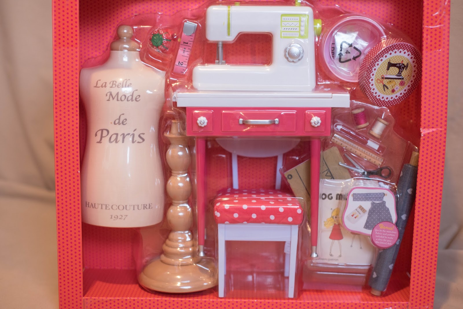 Can you believe it?  It's the ever-desirable, always elusive "It Seams Perfect" sewing set from Our Generation!  I have drooled over this on the internet and haunted all my local Targets, but had resigned myself that acquiring a set of my own was not to be.  And then, out of nowhere, my wonderful, little sewing student happened upon it one day and wanted to get it for me.  How awesome is that?!?